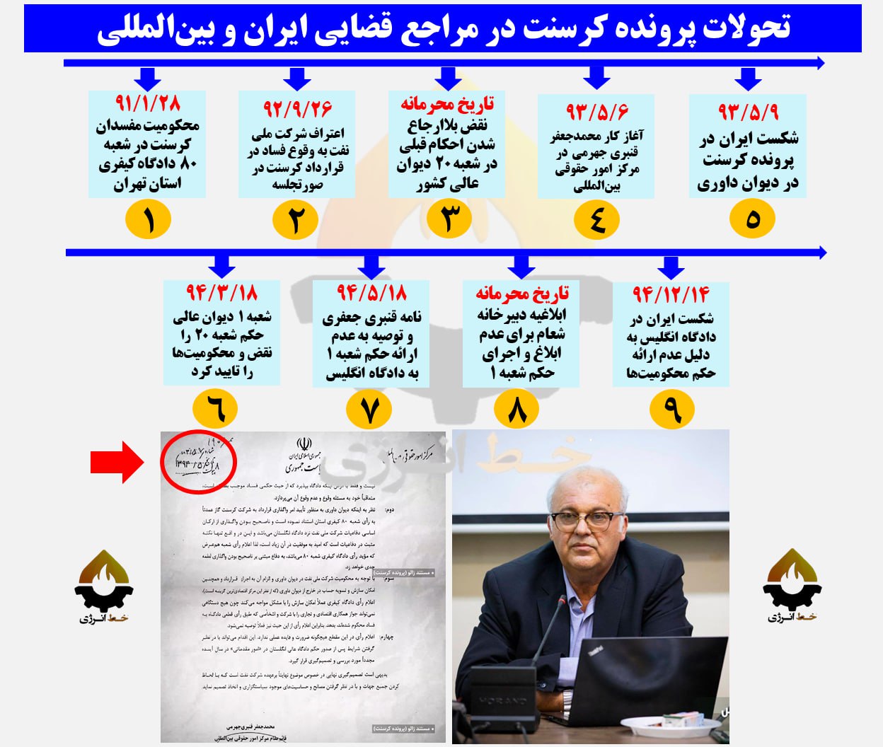 ایران در مرداد ۹۳ در دیوان داوری شکست خورد زیرا مدرکی مبتنی بر وقوع فساد ارائه نکرد اما در ۹۴/۳/۱۸ شعبه ۱ دیوان عالی کشور احکام محکومیت مفسدان را صادر کرده؛
