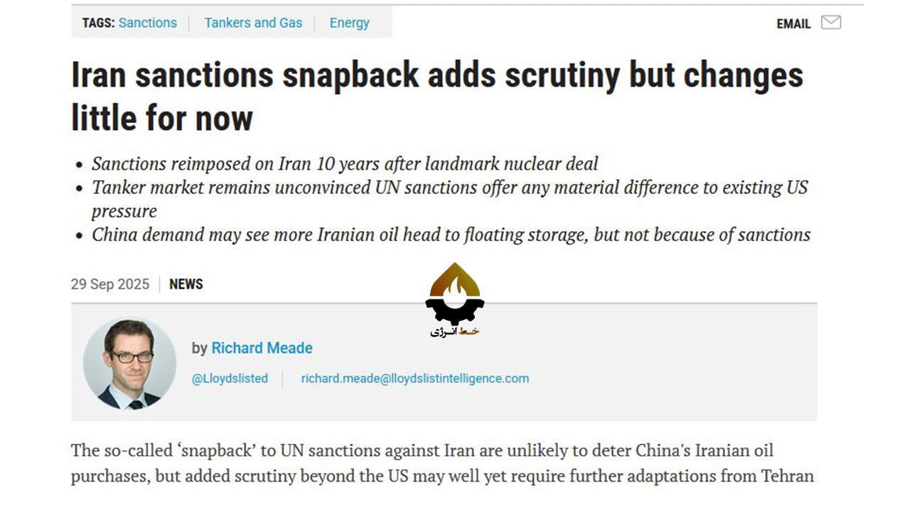 خط انرژی| گزارش نشریه تخصصی صنعت کشتیرانی در لندن نوشت: بازگشت تحریمهای ایران بررسیهای بیشتری را به همراه دارد، اما فعلاً تغییر چندانی ایجاد نمیکند.